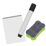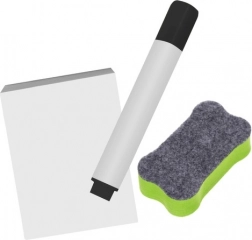 W komplecie znajduje się półka na przybory oraz zestaw startowy: kolorowe kredy, marker i gąbka do natychmiastowego użycia.