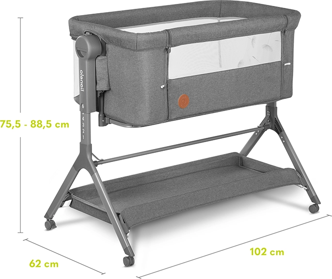 Odpinana ścianka boczna umożliwia wspólne spanie z rodzicami, co daje nie tylko wygodę, ale i bezpieczeństwo dzięki pasom mocującym do łóżka rodziców. Dodatkowo docenisz przestrzeń do przechowywania zabawek lub niezbędnych akcesoriów oraz praktyczną torbę do łatwego przenoszenia złożonego łóżeczka.