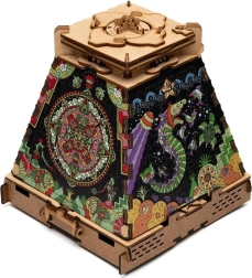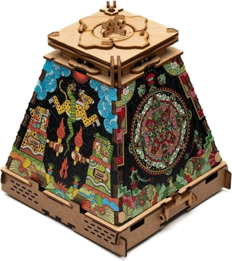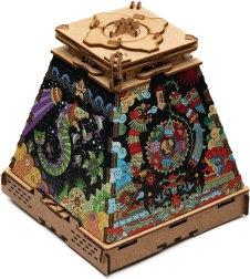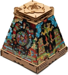 Odmień drewnianą piramidę w przyciągający wzrok element wystroju. Ta druga warstwa z motywem Azteckie Imperium elegancko przykrywa oryginalne wzory i nadaje Twojemu modelowi wyrazisty, kolorowy wygląd inspirowany starożytną Mezoameryką. Rozszerzenie jest przeznaczone wyłącznie do PIRAMIDY SŁOŃCA i ma wyłącznie dekoracyjny charakternie wpływa na mechanizm ani rozwiązanie łamigłówki.