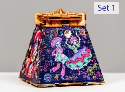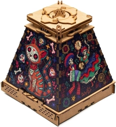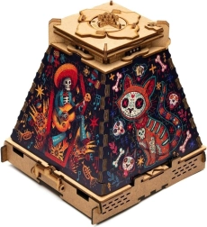 Odmień swoją kultową łamigłówkę Piramida Słońca w barwne widowisko dzięki tematycznemu rozszerzeniu Dzień Zmarłych. Precyzyjnie wycinane drewniane elementy i nasycony nadruk tworzą nową warstwę, która podkreśla design całej piramidy i zamienia ją w niezwykłą dekorację. Rozszerzenie przeznaczone jest wyłącznie do celów estetycznych – nie ingeruje w rozwiązanie oryginalnej łamigłówki.