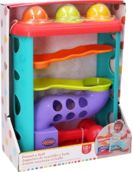 Tor z kulkami do wbijania to klasyczna aktywna zabawka, która motywuje dzieci do odkrywania związków przyczynowo‑skutkowych. Po wbiciu kulka zjeżdża torem, a dziecko natychmiast widzi efekt swojego działania. Dzięki temu rozwija się motoryka, cierpliwość i koordynacja.