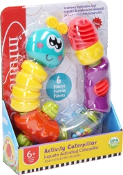 Dzięki modułowej konstrukcji z 6 części gąsienicę można składać na różne sposoby, co wspiera kreatywność i wydłuża czas zabawy. Lekkie, ergonomiczne wykonanie dobrze leży nawet w małych rączkach i pomaga budować umiejętności koordynacyjne oraz percepcję wzrokowo–słuchową.