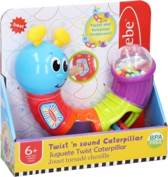 Urocza grzechotka gąsienica Maamaa to świetny towarzysz pierwszych odkryć świata. Elementy są podzielone na części, którymi można łatwo obracać, co naturalnie rozwija małą motorykę i koordynację ręka–oko. Różne dźwięki – stukanie, grzechotanie i piszczenie – stymulują percepcję słuchową, a małe lusterko wspiera świadomość własną i przyciąga uwagę maluszka.