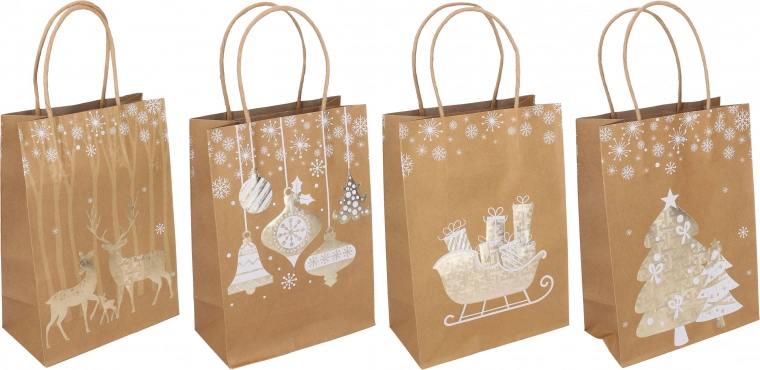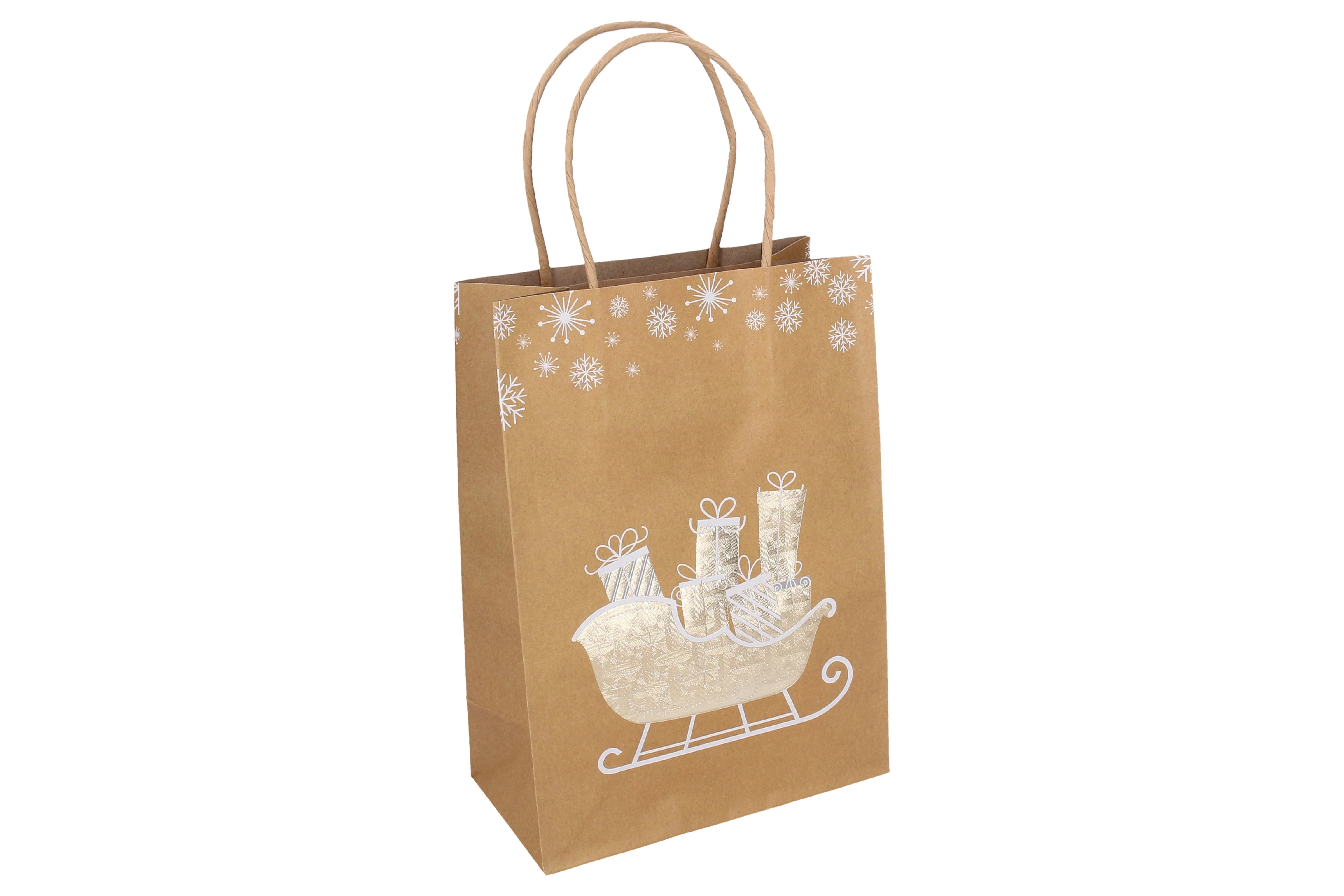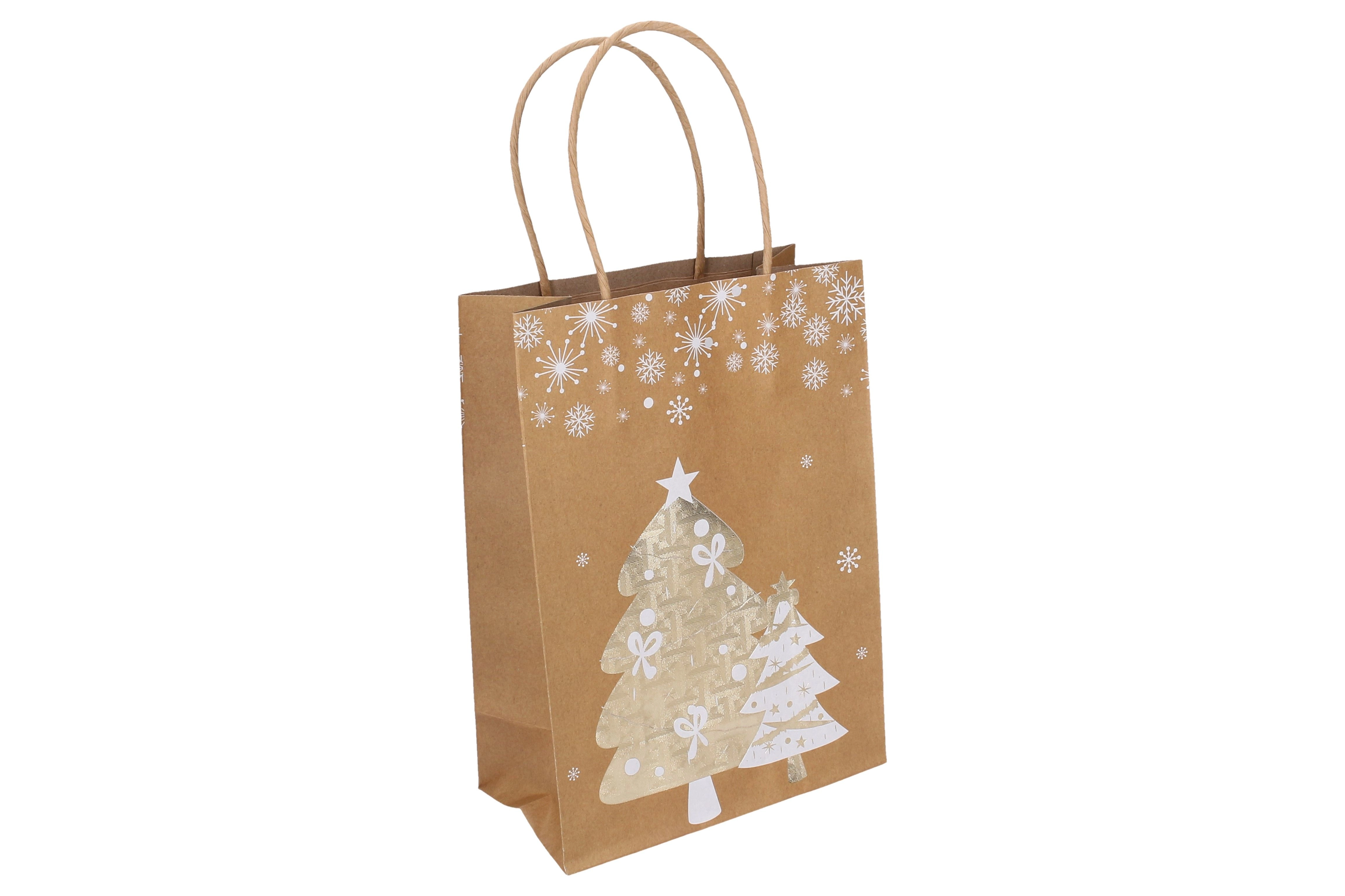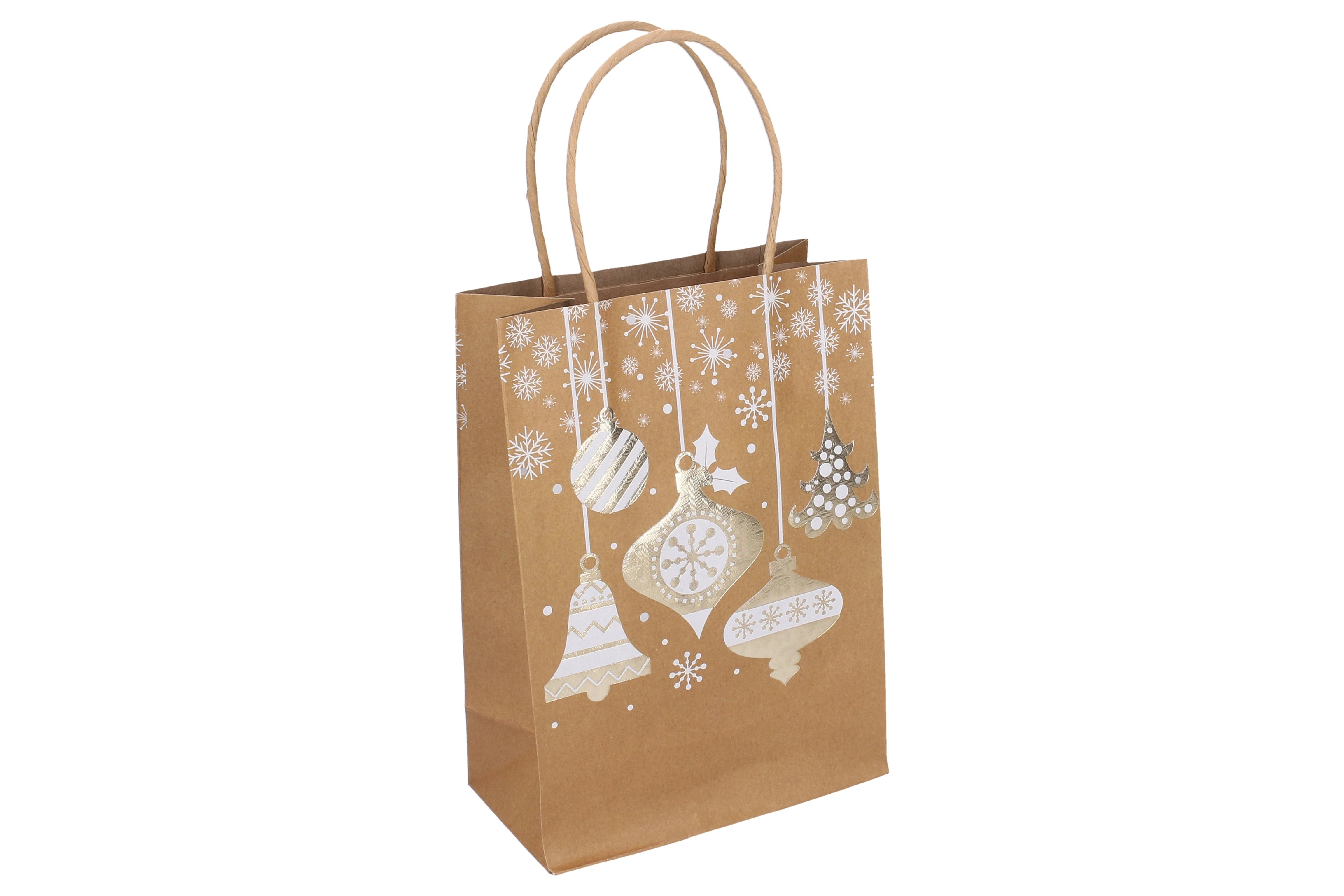 Elegancka świąteczna torebka prezentowa w rozmiarze S o wymiarach 15 × 21 × 8 cm jest idealna na drobne upominki. Oferuje stylowe świąteczne motywy, solidne wykonanie oraz praktyczny uchwyt dla wygodnego noszenia. Dostępne są 4 warianty wzornicze.