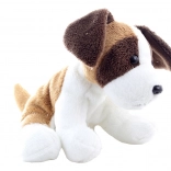 Pluszowy pies jest wykonany z delikatnego, przyjemnego materiału odpowiedniego do przytulania, zapewniając wrażenie komfortu.