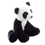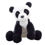 Realistyczne wykonanie z czarnymi plamami wokół oczu i uszu nadaje pandzie naturalny wygląd. Zintegrowane kuleczki pozwalają pandzie samodzielnie siedzieć.
