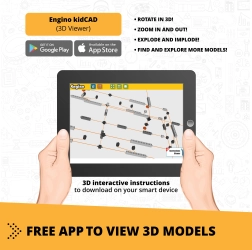 - Element edukacyjny: Aplikacja Engino kidCAD umożliwia wyświetlanie modeli w 3D i dostarcza szczegółową instrukcję montażu.