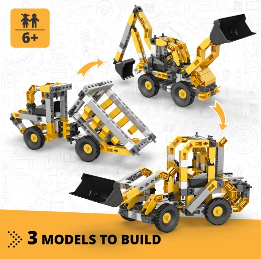 Zestaw Engino Creative Builder do kreatywnego budowania 3 typów ładowarek, z 3D instrukcją w aplikacji, dla dzieci od 6 lat.
