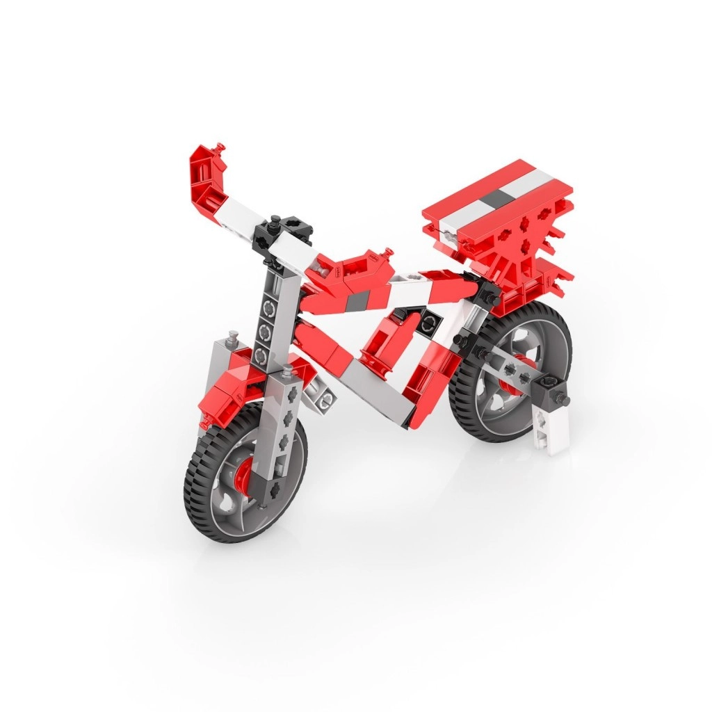 Rozwijaj kreatywność i zręczność manualną dzieci z solidnymi klockami ENGINO Creative Builder. Poszczególne elementy łatwo się zatrzaskują i szybko przebudowują na kolejny model – od szybkiego auta przez motocykl aż po samolot. Dzięki silniczkowi z wyborem kierunku Twoje konstrukcje naprawdę się rozjadą.