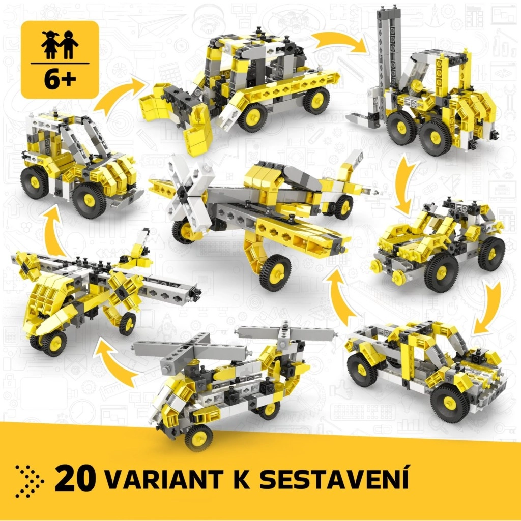 • 20 modeli w jednym zestawie – od samolotów i śmigłowców po pojazdy i maszyny
