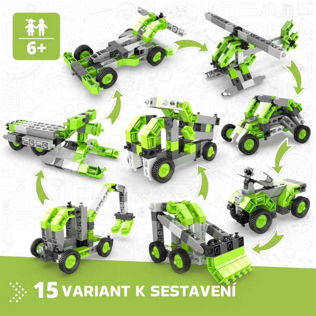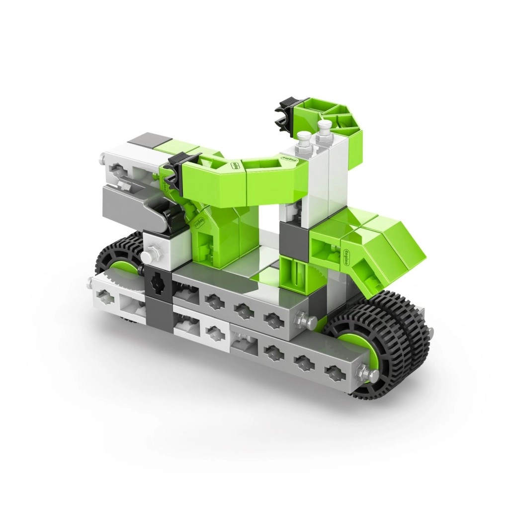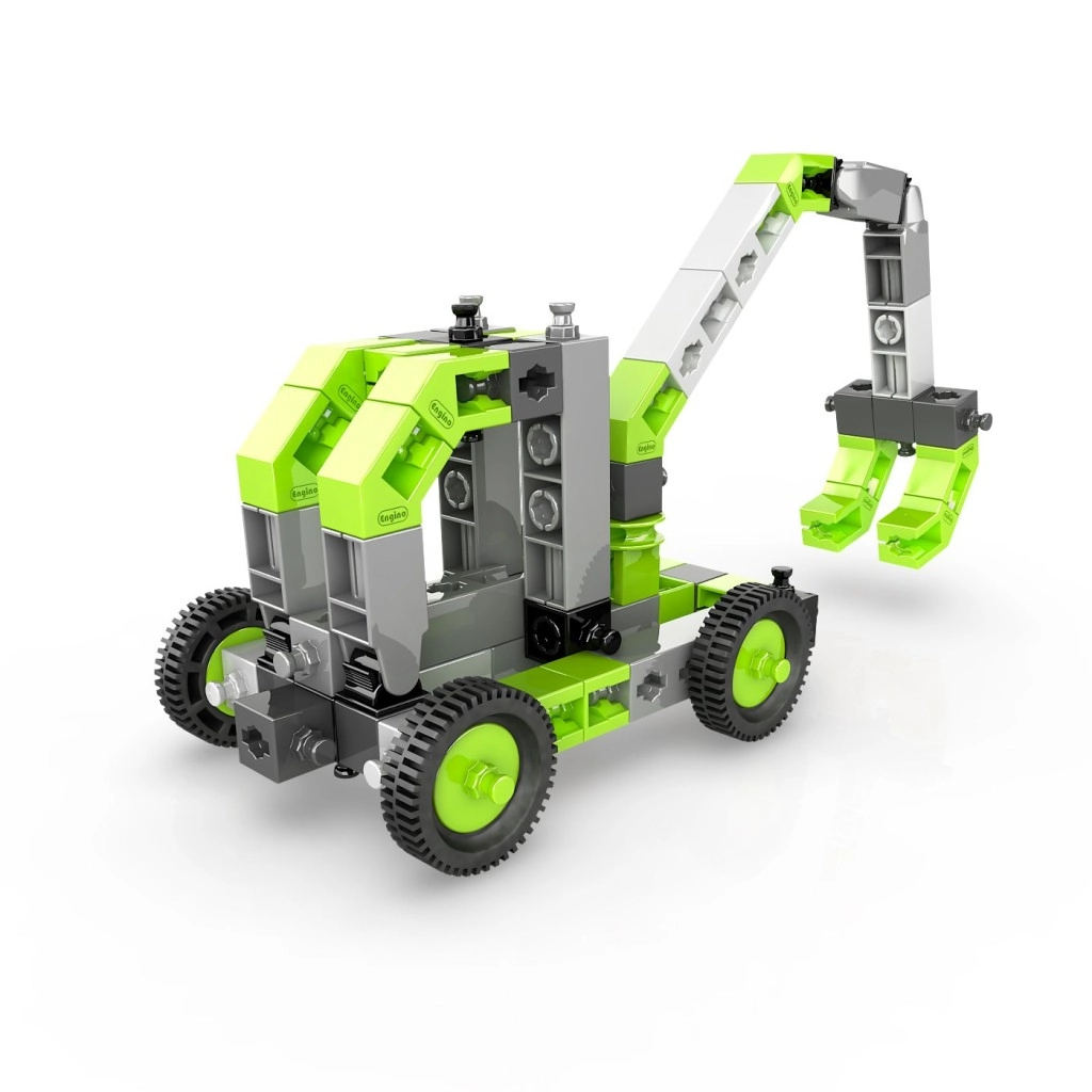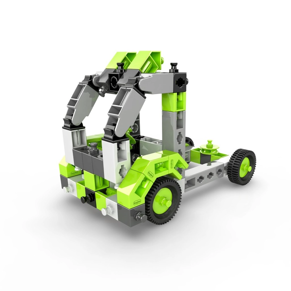 Stwórz kolekcję pojazdów kołowych, ramion podnoszących i innych maszyn, które wspierają wyobraźnię oraz umiejętności STEM. Zestaw jest produkowany w UE (Cypr) i w pełni kompatybilny z innymi zestawami Engino, więc możliwości rozbudowy są praktycznie nieograniczone.
