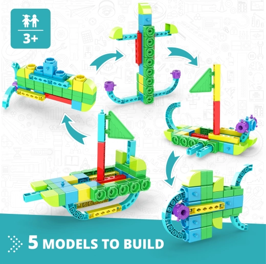Dzięki tym klockom EnGino możesz odkrywać podwodny świat poprzez 5 różnych modeli i aktywności, które rozwijają dziecięcą wyobraźnię i wiedzę.