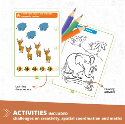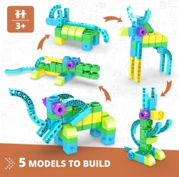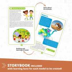 Engino Klocki Uczymy się – dzikie zwierzęta oferują dzieciom możliwość nie tylko zbudowania aż 5 różnych modeli, ale też odkrywania ciekawych faktów o zwierzętach. Ucz się poprzez zabawne aktywności, takie jak kolorowanki, łączenie kropek czy ćwiczenie matematyki, a wszystko to wsparte aplikacją z rozszerzoną rzeczywistością (Augmented Reality).