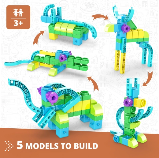 Klocki Engino – Ucz się i odkrywaj z dzikimi zwierzętami, 5 modeli i wiele aktywności edukacyjnych.