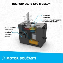 Zintegrowany silnik z przekładnią umożliwia zmianę kierunku i prędkości. Dzieci w praktyce poznają mechanikę i działanie przekładni.