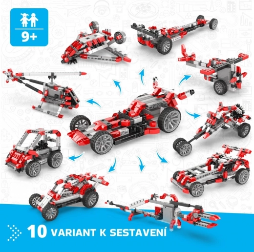 - 10 modeli w jednym – auta wyścigowe, buggy, helikopter i inne maszyny.
