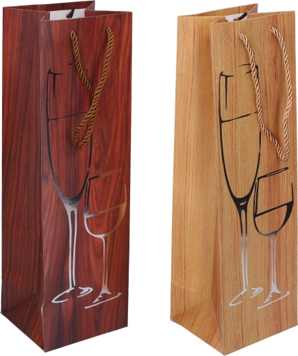 Torebka prezentowa na butelkę idealna do całorocznego użytku. Dostępna w dwóch wariantach kolorystycznych i eleganckim wzornictwie.