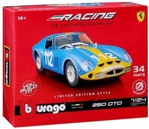 Złóż kultowe FERRARI 250 GTO w skali 1:24 od BBURAGO. Metalowy zestaw o precyzyjnym wykonaniu i atrakcyjnym, niebieskim wykończeniu ucieszy kolekcjonerów oraz początkujących modelarzy.