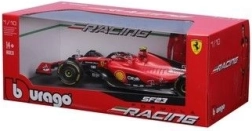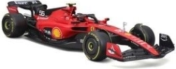 Oficjalnie licencjonowany metalowy model Bburago w skali 1:18 wiernie odwzorowuje bolid Scuderia Ferrari SF-23 (2023) ze startowym numerem 55. Do zestawu dołączono figurkę Carlosa Sainza, autentyczne barwy zespołu oraz precyzyjne detale – idealny dla kolekcjonerów i fanów Formuły 1.