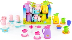 - Kolorowy zestaw z dzbankiem: dzbanek, 4 filiżanki, 4 spodki, 4 łyżeczki, cukierniczka, mlecznik