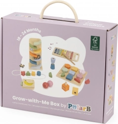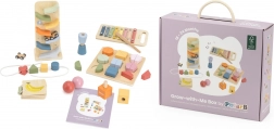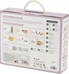 Bezpieczne drewniane wykonanie z gładkimi krawędziami oraz pastelowe kolory zachęcają do odkrywania, ćwiczą cierpliwość, koncentrację i logiczne myślenie. Zestaw doskonały na prezent i jako wstęp do świata sensownych aktywności inspirowanych Montessori.
