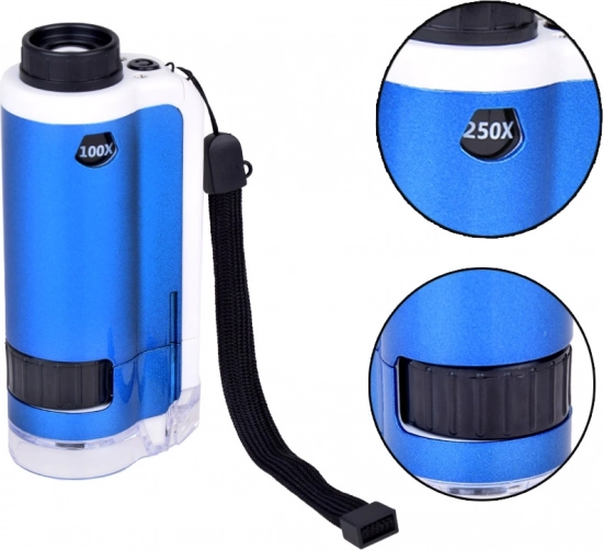 Kieszonkowy mikroskop dla dzieci z powiększeniem 100×/250×, metalowy
