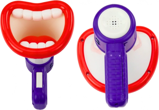 Oryginalny wygląd megafonu przypominający otwarte usta sprawia, że urządzenie jest zabawnym dodatkiem do każdej dziecięcej zabawy.