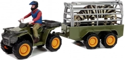 - Quad, odczepiana przyczepa/klatka transportowa z otwieraną tylną burtą, figurka kierowcy, figurka zebry