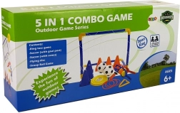 Ten wszechstronny zestaw gier sportowych 5 w 1 to świetny wybór do ogrodu, na boisko i na wyjazdy. Dzieci zagrają w mini piłkę nożną z bramką, wypróbują FRISBEE, poćwiczą celność przy rzucaniu kółkami oraz zwinność z koszykami do łapania. Dzięki wytrzymałemu plastikowi i łatwemu montażowi wszystko jest gotowe do zabawy w kilka chwil.