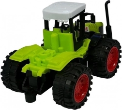 Solidny plastikowy traktor z dużymi kołami i kontrastowym dachem wygląda jak prawdziła maszyna i z łatwością ciągnie wszystkie przyczepy.