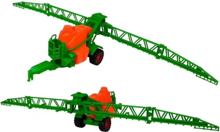 Długie ramiona opryskiwacza oraz realistyczny rozsiewacz nawozu pozwalają dzieciom dbać o pola jak prawdziwi rolnicy.