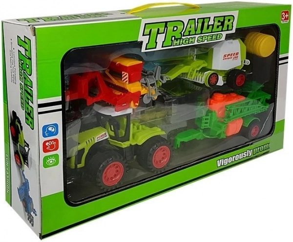 Zabawny zestaw farmerski z traktorem, opryskiwaczem i prasą