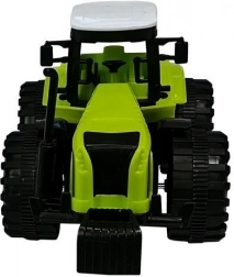 Zielony traktor z białym dachem i dużymi kołami poradzi sobie z każdym „polowym” zadaniem. Idealna baza do podłączania kolejnych narzędzi.