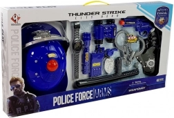 Policyjny zestaw z hełmem i zabawkami na baterie