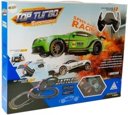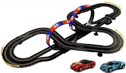 Ciesz się długimi godzinami emocjonujących wyścigów! Ten elektryczny tor łączy płynną jazdę, widowiskowe pętle i dynamiczne efekty świetlne. Dwa autka w skali 1:43 (czerwone i niebieskie) umożliwiają uczciwy wyścig dwóch graczy jednocześnie, a panel sterujący z czytelnymi przełącznikami zapewnia wygodne sterowanie.