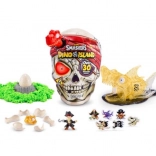 Wyrusz na epicką wyprawę z olbrzymią Czaszką Smashers Dino Island o wysokości ponad 30 cm. Naciśnij oko, które zaświeci i uruchomi piracki głos, po czym zacznij odkrywać 30 ukrytych niespodzianek. Przeszukuj trzy rodzaje mas – piankę, gluta i magiczny piasek – i znajdź części do złożenia przezroczystego dinozaura.