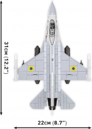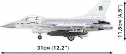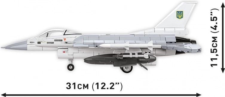 F-16 Fighting Falcon to jeden z najbardziej znanych wielozadaniowych samolotów myśliwskich na świecie. Ten zestaw COBI w skali 1:48 wiernie odwzorowuje wersję AM w ukraińskim malowaniu. Wszystkie elementy mają wysokiej jakości nadruki tampodrukiem (bez naklejek). W komplecie znajduje się przezroczysty stojak z tabliczką informacyjną oraz szczegółowo nadrukowana figurka ukraińskiego pilota z hełmem i maską tlenową.