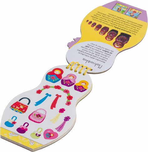 Odkrywaj świat mody i tradycji z kreatywną książeczką, która zapewni dzieciom godziny zabawy. Zestaw zawiera kolorowanki, arkusze wzorów i naklejki, dzięki którym dzieci mogą tworzyć własne stylizowane modele inspirowane rosyjskimi laleczkami i elementami kultury.