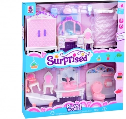 Dzięki starannemu wykonaniu i gładkim krawędziom zestaw jest bezpieczny i przyjemny w dotyku. Plastikowe materiały zapewniają łatwą pielęgnację i odporność podczas codziennej zabawy. Kolorystyka w odcieniach różu, bieli i fioletu działa delikatnie i radośnie – idealna do każdego domku dla lalek.