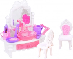 Ten bogato wyposażony zestaw mebli do domku dla lalek oferuje wszystko, co potrzebne do stylowej sypialni i funkcjonalnej łazienki. Eleganckie łóżko z dekoracyjną ramą, toaletka z lustrem, szafa oraz łazienkowe akcesoria, takie jak wanna, toaleta i umywalka, inspirują dzieci do długich godzin fantazyjnej zabawy.
