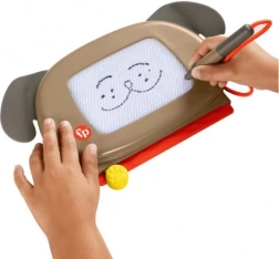 Pozwól swoim dzieciom uwolnić kreatywność z magnetyczną tablicą do rysowania Fisher-Price Poodle Pro. Ta tablica ma kształt pieska, jest łatwa do przenoszenia i odpowiednia dla dzieci od 3 lat. Zawiera przymocowany rysik na sznurku do rysowania oraz suwak do łatwego wymazywania rysunków.