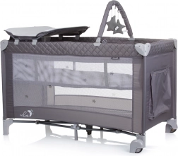 Zawartość opakowania: łóżeczko składane, druga warstwa z miękką podkładką, przewijak, przegroda/organizer, pałąk wiszący z 3 pluszowymi zabawkami, torba transportowa.