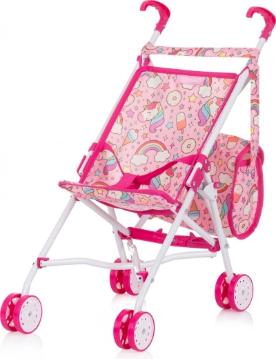Wózek, łóżeczko i krzesełko do karmienia dla lalek w czarującym motywie UNICORN. W zestawie znajduje się torba na pieluchy oraz torba transportowa na wszystkie akcesoria.