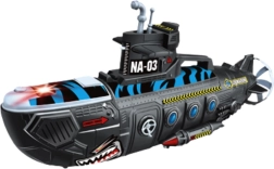 Ta duża wojskowa łódź podwodna ucieszy wszystkie dzieci zafascynowane żołnierzami, misjami morskimi i życiem pod powierzchnią. Po naciśnięciu górnego przycisku uruchamiają się realistyczne dźwięki strzałów, które potęgują atmosferę zabawy. Dzięki zintegrowanym kółkom łódź podwodna łatwo porusza się po podłodze i jest gotowa do akcji w dziecięcym pokoju.