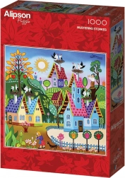 Zrelaksuj się przy pięknie ilustrowanych, kwadratowych puzzlach z motywem zlotu bocianów. Zawierają 1000 elementów, a po ułożeniu mają wymiary ok. 63,5 × 63,5 cm – idealne dla miłośników natury i bardziej wymagających układanek.