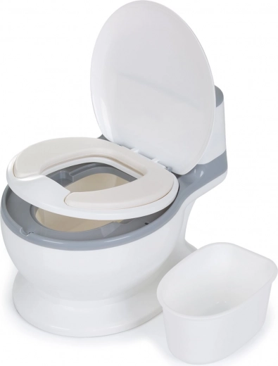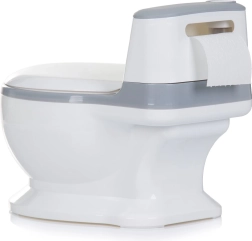 Realistyczny dziecięcy nocnik w stylu prawdziwej toalety ułatwia przejście na duże WC. Oferuje miękkie siedzisko, dźwięk spłukiwania, schowek na papier oraz łatwe czyszczenie. Idealny dla dzieci od 1,5 do 4 lat o wadze do 20 kg.