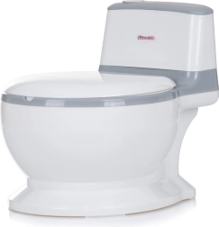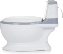 Nocnik Chipolino Lux Grey wygląda i zachowuje się jak prawdziwa toaleta, dzięki czemu pomaga dzieciom w naturalny sposób przyswoić nawyki toaletowe. Realistyczny dźwięk spłukiwania motywuje i umila trening, a miękkie siedzisko zapewnia wygodę i poczucie pewności podczas siedzenia.
