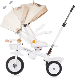 Obrotowy uchwyt dla rodziców i składane oparcie dla kompaktowego przechowywania czynią z rowerka idealnego towarzysza wycieczek.