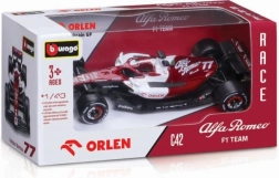 Ten model Bburago doskonale oddaje detale prawdziwego bolidu Formuły 1, w tym logotypy sponsorskie i elementy aerodynamiczne.