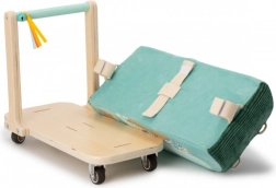 Przemyślana konstrukcja łączy solidną drewnianą podstawę i komfortowe tekstylne siedzisko z powierzchnią łatwą do wipe-clean. Odpinana saszetka pomieści drobiazgi na drogę, a gdy dzieci podrosną, siedzisko łatwo zdejmiesz i zamienisz w miękki puf-worek do odpoczynku.